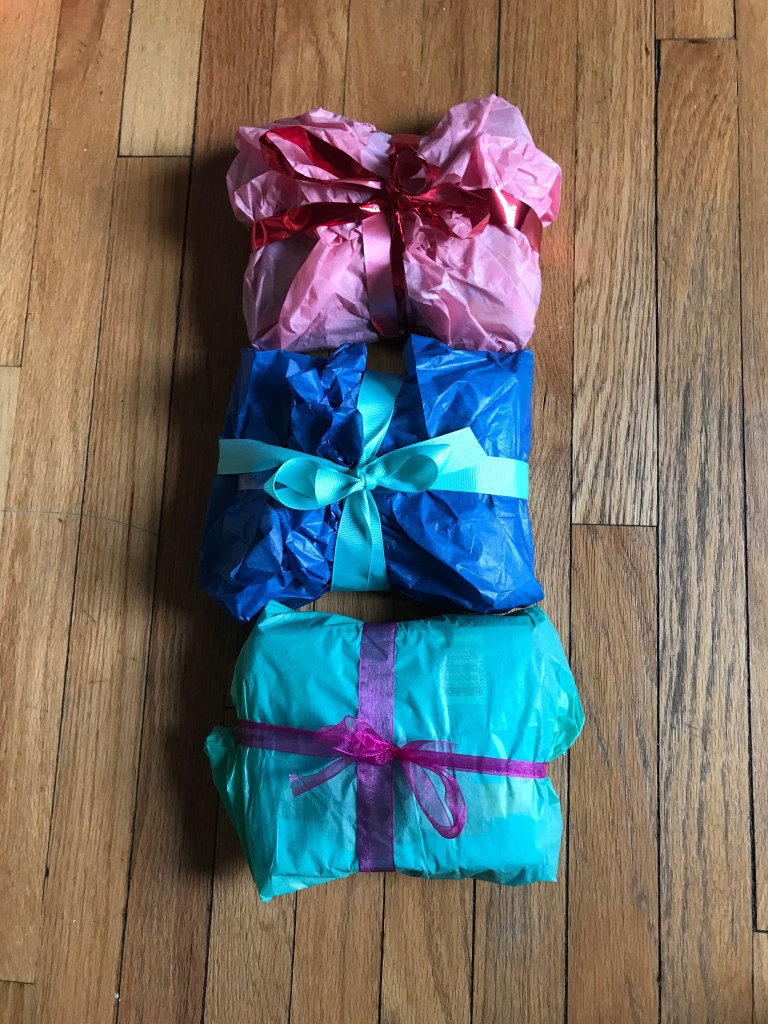 In reflecting on the experiences from the past days, I recalled that everyone I chatted with asked for cash and/or help with traveling somewhere. In paying respects to this, and in paying respects to my feelings of uncertainty about trying to provide food to people, I decided to distribute 3 “Appreciation Gift Packs” to homeless persons, each including some Ventra (public transit) tickets, a Visa gift card, a poncho, a couple of think! protein bars, a couple of Nature Valley nutrition bars, a few packs of Welch’s fruit snacks, and a homemade bookmark/card.